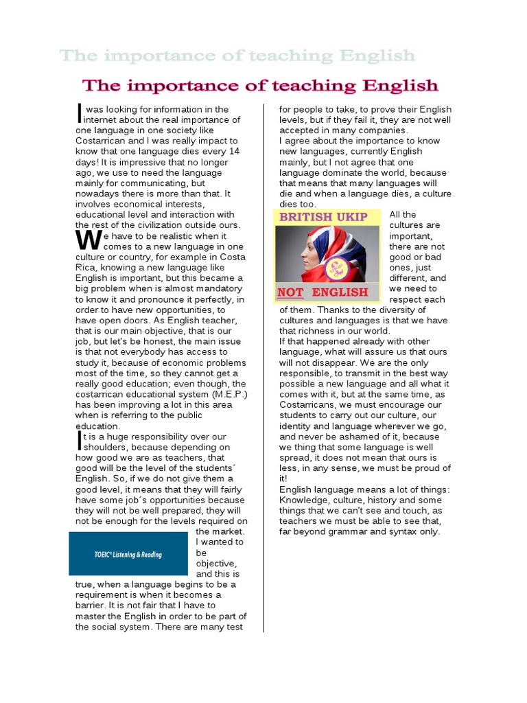 PowerPoint presentation retrieved March 8, essay on importance of english language, from www. Major support provided by our founding partner, the American Federation of Teachers, AFL-CIO. With generous support provided by the National Education Association. This is an awesome site with many practical instructional ideas to help our English Language Learners. There is no doubts that there are a lot of researches behind these great advices and point of view of teaching math. I am a Honduran teacher conducting an Extensive Reading program.